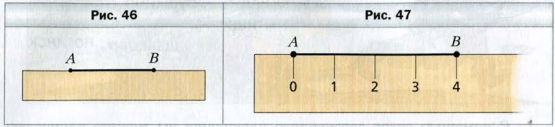 С помощью ровной деревянной рейки две точки A и B можно соединить отрезком (рис. 46). Однако этим примитивным инструментом измерить длину отрезка AB не удастся. Его можно усовершенствовать.