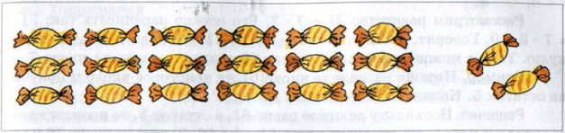 Такое распределение конфет иллюстрирует следующее равенство: 20 = 6 * 3 + 2.
